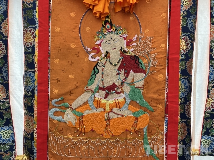 堆繡是唐卡的一種,藏語稱之為“格直卜”或“規(guī)唐”。據(jù)《中國美術(shù)史》記載,堆繡是由刺繡藝術(shù)發(fā)展而來,融入了刺繡工藝的布貼藝術(shù),起源于唐朝。在中國除了蘇繡、湘繡、粵繡和蜀繡這"四大名繡"外,還有京繡、魯繡、杭繡、閩繡等地方名繡,我國的少數(shù)民族如維吾爾族、彝族、壯族、蒙古族、藏族等也都有自己獨特風格的民族刺繡。藏繡,亦是中國少數(shù)民族傳統(tǒng)文化中最具特色的刺繡派系之一,它源于公元九世紀,與唐卡、堆繡并稱為藏傳佛教三大藝術(shù)。