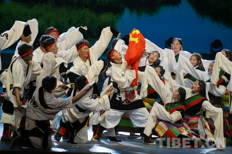 圖為山南市貢嘎縣東拉鄉(xiāng)吉瓊村文藝隊正在演出的舞蹈《圣地囊瑪》 攝影:趙振宇