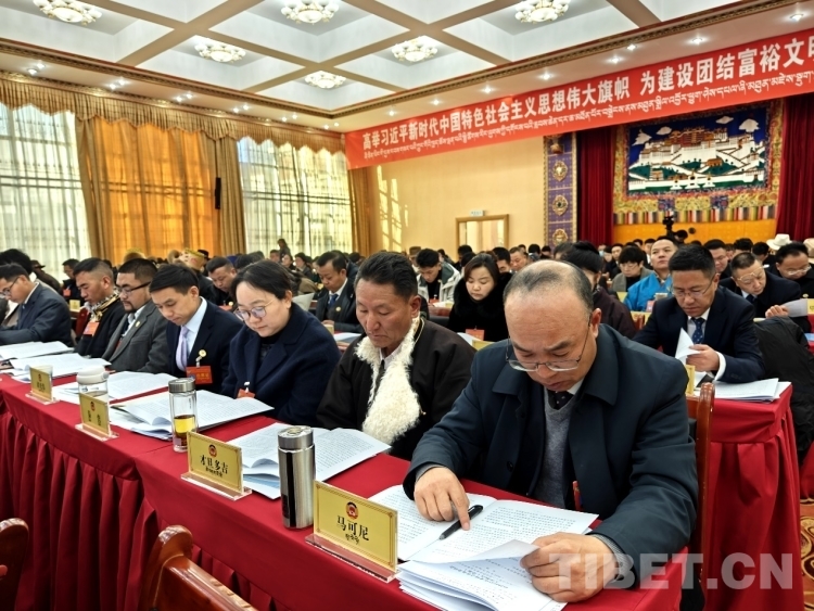 圖為政協(xié)委員認真審閱會議資料 攝影:次旦拉姆