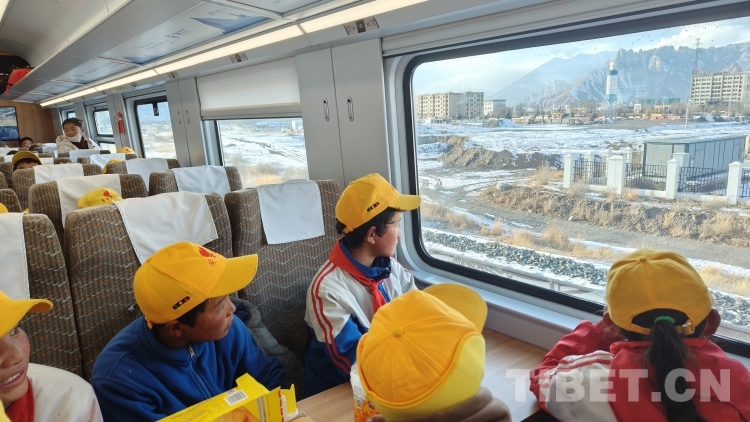 圖為多白鄉(xiāng)小學生乘坐高原動車組列車前往拉薩