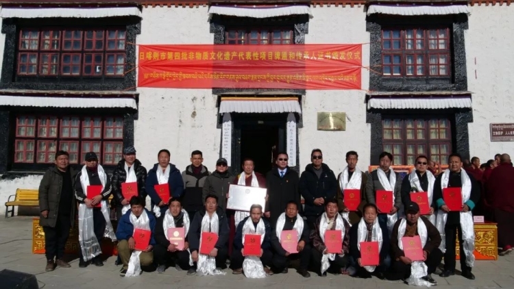 中國(guó)西藏網(wǎng)訊 1月24日,西藏自治區(qū)日喀則市文化局在扎什倫布寺舉行日喀則市第四批(扎什倫布寺)非物質(zhì)文化遺產(chǎn)代表性項(xiàng)目和代表性傳承人項(xiàng)目牌匾及傳承人證書頒發(fā)儀式。