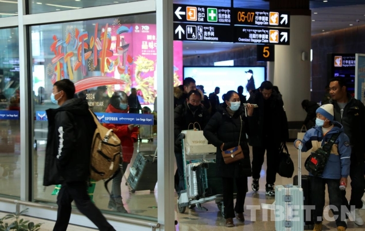 圖為春運首日,抵達拉薩貢嘎機場的乘客 攝影:王佳豪