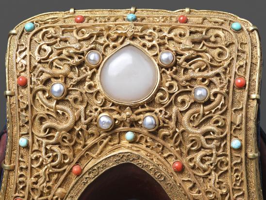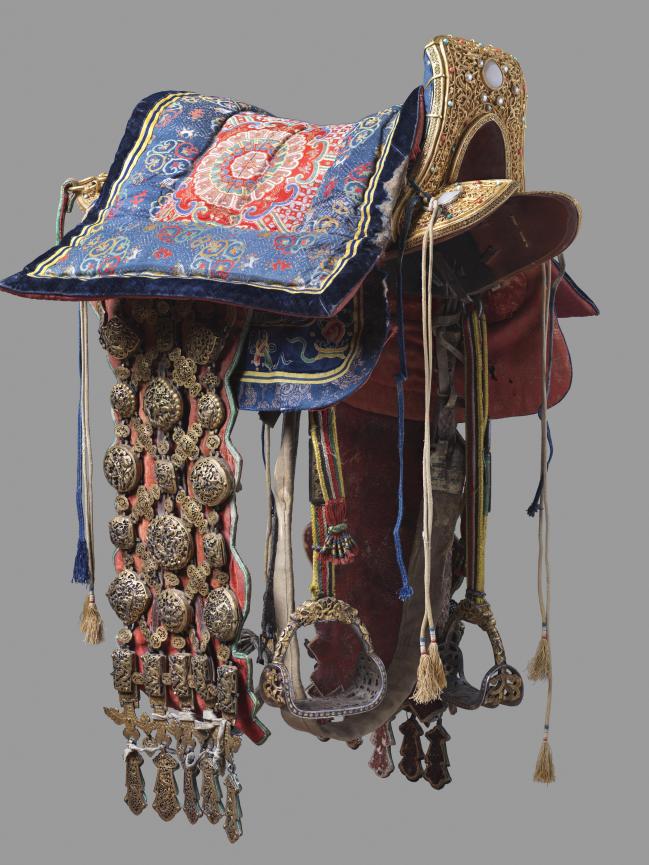 圖為公元18~19世紀(jì)嵌寶石鎏金銀馬鞍
