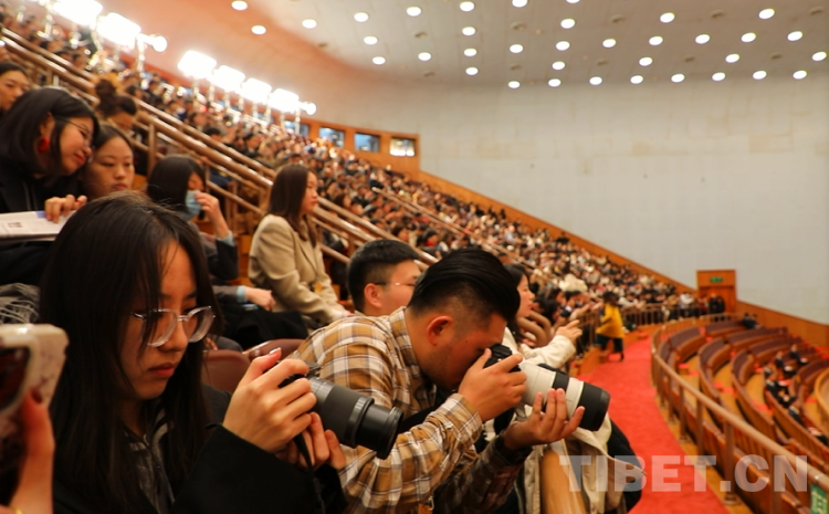 圖為全國(guó)政協(xié)第十四屆全國(guó)委員會(huì)第二次會(huì)議現(xiàn)場(chǎng)的參會(huì)記者 攝影:王茜