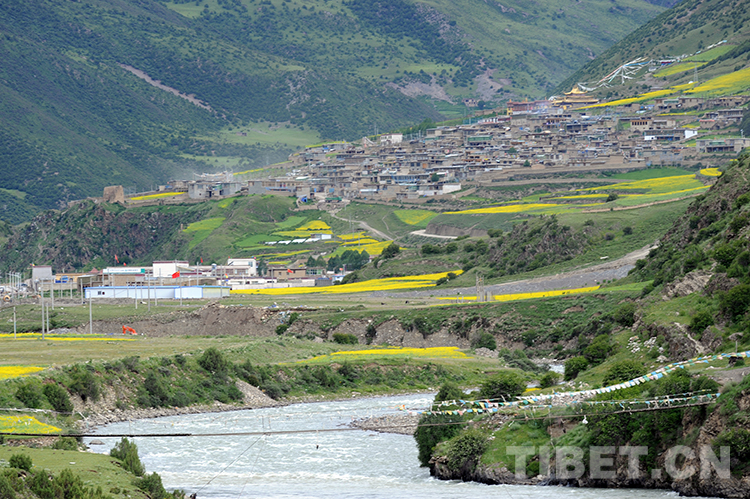 羊秀白嘎風景區(qū)的美麗景觀?!疤K毗古遺址群落”就廣泛分布在這里。前面流淌的是杰曲河水(唐召明2014年7月9日攝)