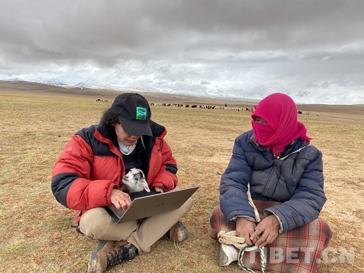 圖為白瑪措(左)在牧區(qū)調(diào)研 受訪者供圖