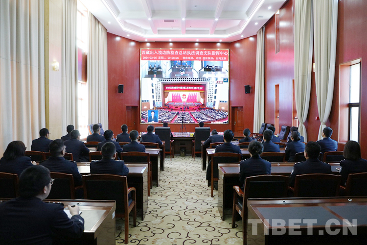 中國西藏網(wǎng)訊 3月5日上午,十四屆全國人大二次會議在北京開幕。西藏邊檢總站執(zhí)法調(diào)查支隊組織各級民警集中收看了開幕會實況,重點收看并學(xué)習(xí)了李強總理在開幕會上所作的《政府工作報告》。