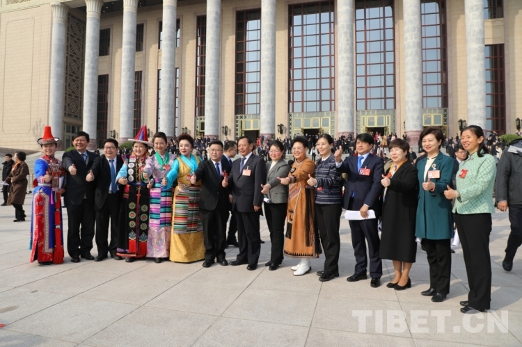 圖為3月10日,中國(guó)人民政治協(xié)商會(huì)議第十四屆全國(guó)委員會(huì)第二次會(huì)議閉幕后,少數(shù)民族界別全國(guó)政協(xié)委員點(diǎn)贊留影 攝影:王茜