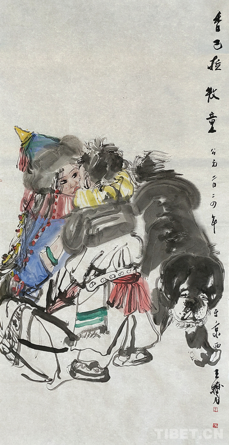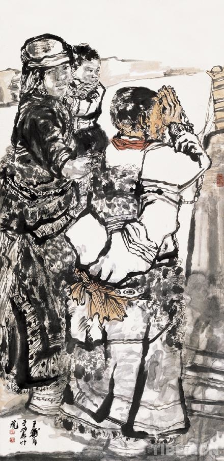 自1978年考入西北師范大學(xué)學(xué)習(xí)中國(guó)畫(huà)專業(yè),王輔民對(duì)表現(xiàn)藏族題材的中國(guó)畫(huà)充滿興趣。在80年代初,受吳山明老師的影響,王輔民首次接觸到用中國(guó)畫(huà)水墨形式表現(xiàn)藏族群眾生活的作品,這為他后續(xù)的創(chuàng)作奠定了基礎(chǔ)。1993年調(diào)入蘭州畫(huà)院后,他多次到甘肅省甘南州、青海省黃南州和西藏自治區(qū)各地市采風(fēng)寫(xiě)生,深入體驗(yàn)當(dāng)?shù)厣?,持續(xù)近30年。這些經(jīng)歷加深了他對(duì)西藏文化的了解,也為他找到了藝術(shù)創(chuàng)作的切入點(diǎn)和主題。