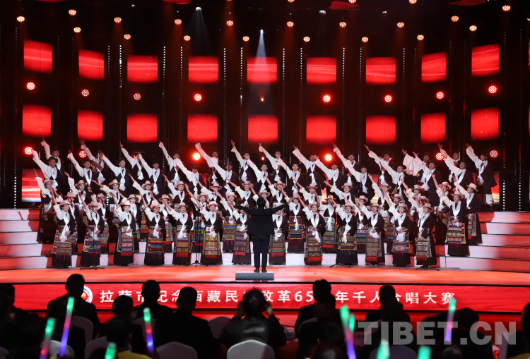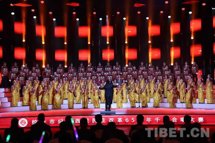 中國西藏網(wǎng)訊 3月27日晚,《盛世中國 幸福西藏》拉薩市紀(jì)念西藏民主改革65周年千人合唱大賽在拉薩師范高等??茖W(xué)校體育館舉行。