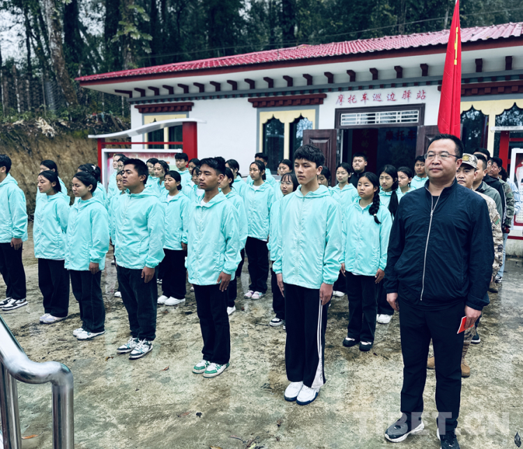 圖為活動期間,35名新入團學生代表在德爾貢巡邊服務驛站參加入團儀式