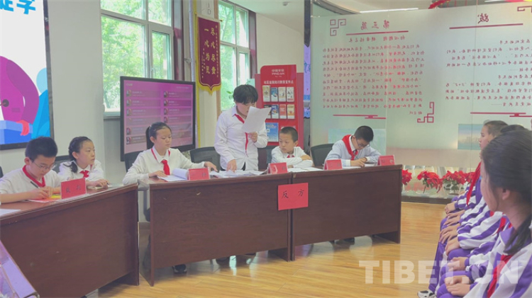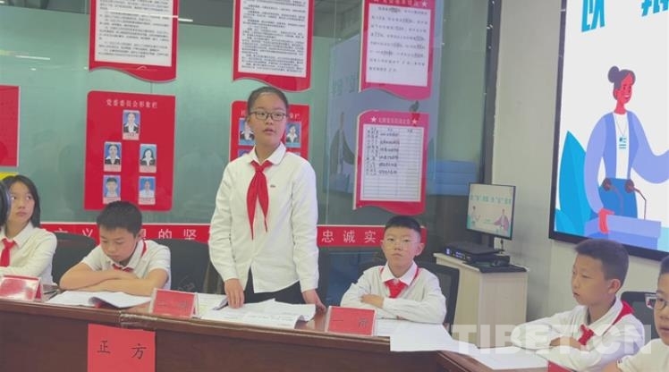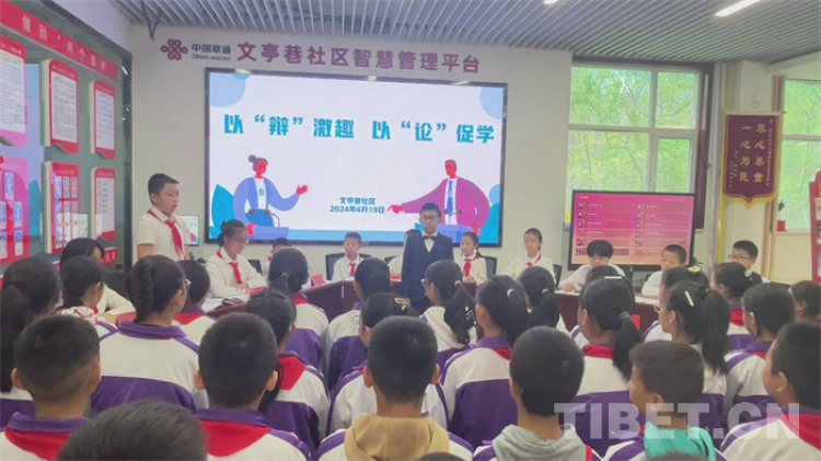 中國西藏網(wǎng)訊 4月19日,青海省西寧市海湖新區(qū)的文亭巷社區(qū)活動室里,傳出稍顯稚嫩卻有力的聲音:“今天我們辯論的題目是:中小學生應(yīng)不應(yīng)該使用電子產(chǎn)品。下面介紹雙方辯手……”這是文匯小學五年級二班的學生在此開展辯論賽。