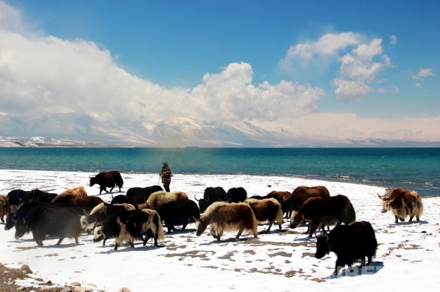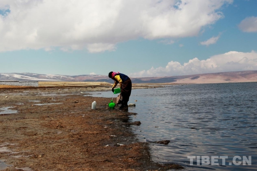圖為群眾在位于西藏自治區(qū)阿里地區(qū)普蘭縣的瑪旁雍錯汲水 攝影:劉莉