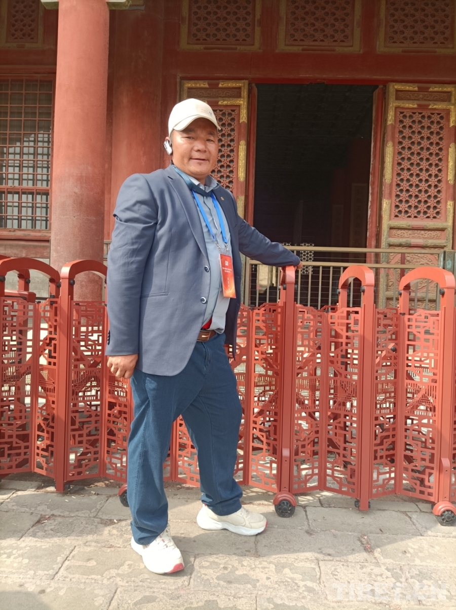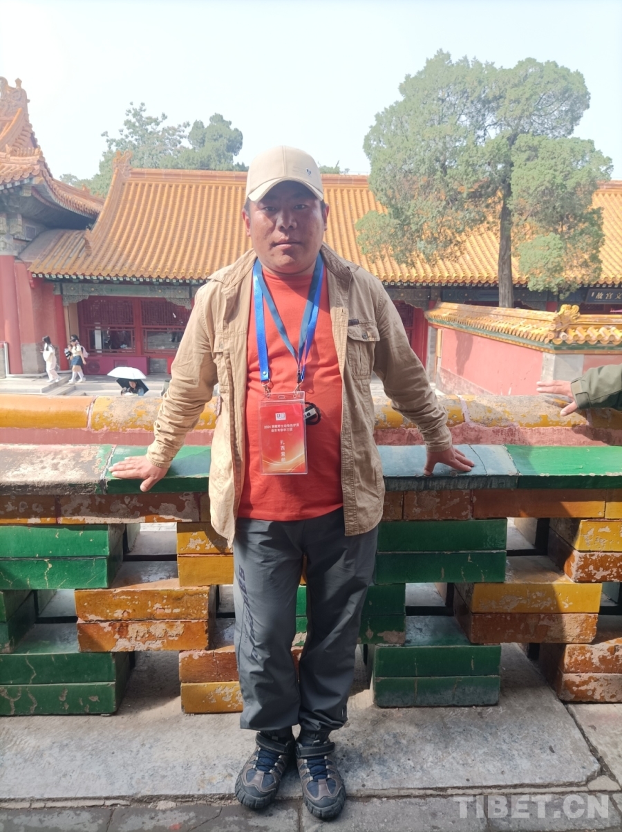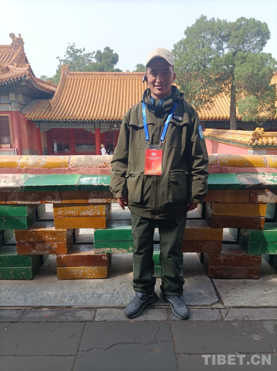 圖為西藏自治區(qū)野生動物保護(hù)員進(jìn)京考察學(xué)習(xí)團(tuán)成員在故宮拍照留念 攝影:趙婧茹