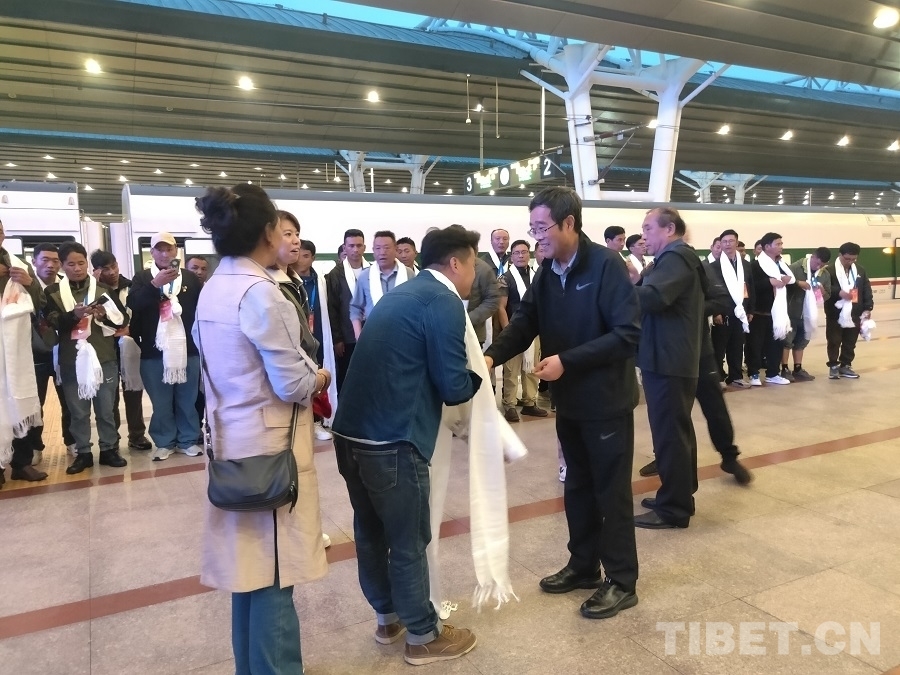 中國(guó)西藏網(wǎng)訊 4月27日晚,西藏野生動(dòng)物保護(hù)員進(jìn)京考察學(xué)習(xí)活動(dòng)圓滿(mǎn)結(jié)束,學(xué)員們?cè)诒本┪髡镜巧翔F路Z21次列車(chē),開(kāi)啟返回家鄉(xiāng)的路程。北京建藏援藏工作者協(xié)會(huì)、中國(guó)鐵道旅行社集團(tuán)有限公司、中國(guó)西藏網(wǎng)、中華網(wǎng)等參與此次學(xué)習(xí)考察活動(dòng)的組織單位到北京西站送別。