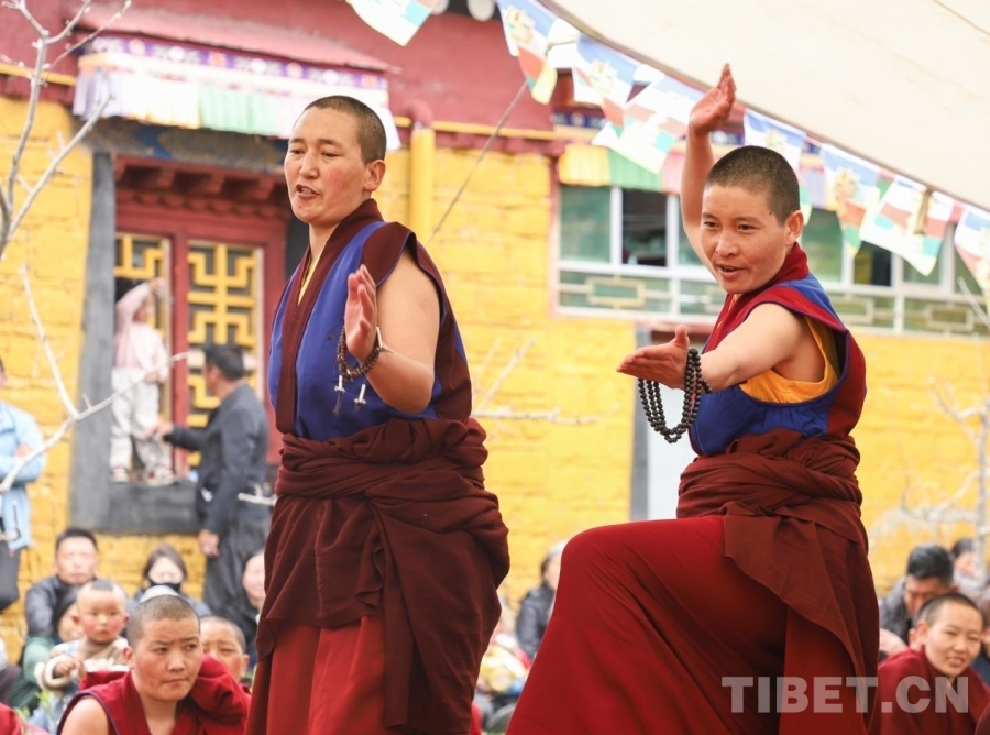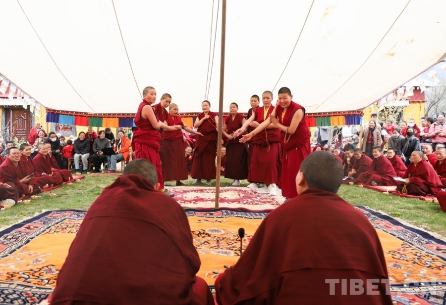 圖為尼眾辯經(jīng)現(xiàn)場