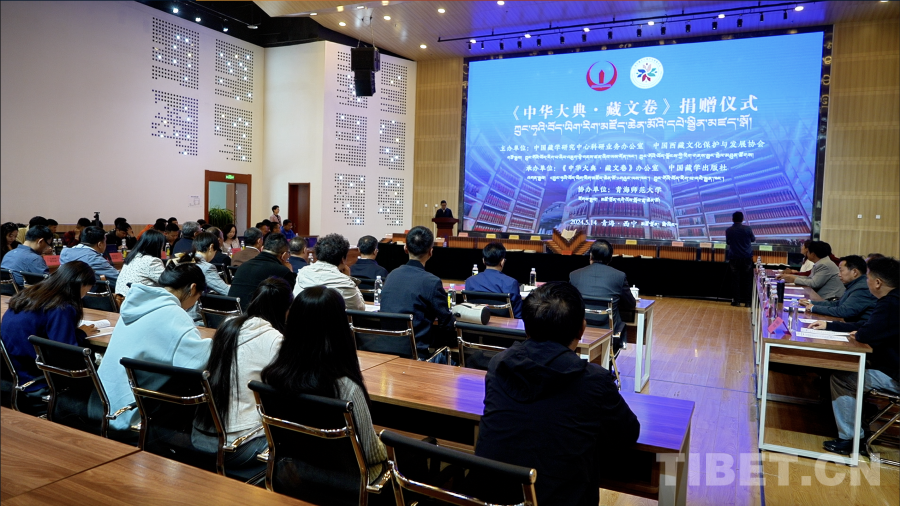 中國西藏網(wǎng)訊 5月14日,《中華大典·藏文卷》捐贈儀式在青海師范大學舉行。中國藏學研究中心與中國西藏文化保護與發(fā)展協(xié)會為青海、甘肅兩省的47家機構和藏傳佛教寺廟捐贈《中華大典·藏文卷》系列圖書。