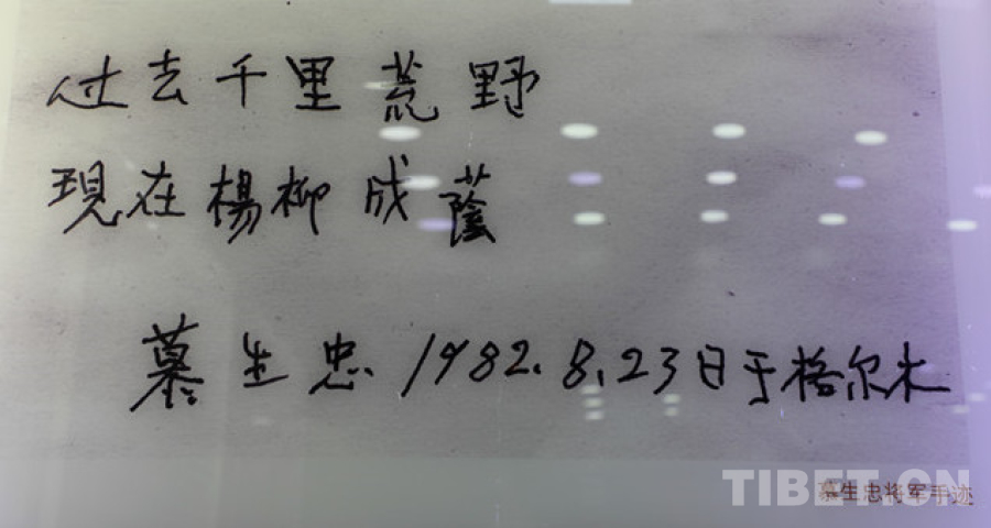 圖為青藏公路紀念館展出的慕生忠手跡(圖) 翻拍:王茜