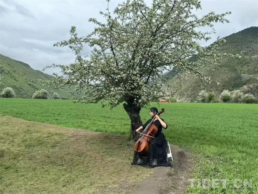 悠揚(yáng)的樂(lè)聲自林間傳來(lái),沿著步道往深處走去,一場(chǎng)特別的演奏會(huì)正在進(jìn)行。枝頭海棠盛放,樹下游人如織,鋼琴、大提琴、笛子等各色樂(lè)器奏出的曲調(diào)在貢嘎海棠的映襯下更顯別樣風(fēng)味,來(lái)自西安的韓先生細(xì)細(xì)聆聽木雅傳統(tǒng)非遺口弦的演奏后不禁感嘆道,“太美了!這個(gè)活動(dòng)將音樂(lè)與貢嘎海棠花海巧妙融合,讓我感受到一種別樣的人與自然共生的和諧?!?/p>