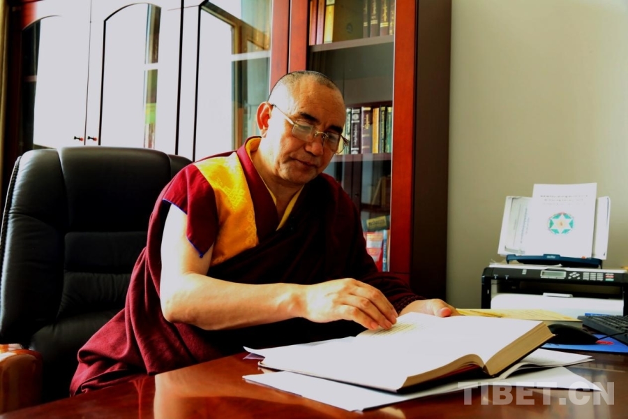 圖為青海省藏語系佛學(xué)院教務(wù)處副處長、特級經(jīng)師悟嘉倉 攝影:劉莉