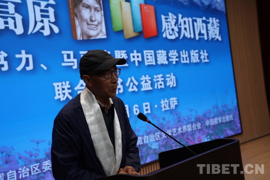 何瑞表示,在全區(qū)各族人民深入學(xué)習(xí)貫徹黨的二十大精神和習(xí)近平文化思想,深入推進(jìn)文化強(qiáng)區(qū)建設(shè)之際,西藏文藝界的老領(lǐng)導(dǎo)、老文藝家和中國藏學(xué)出版社送來的精神食糧和文藝大餐,如久旱夏日里的一場及時(shí)雨滋潤心田,為西藏各項(xiàng)事業(yè)的高質(zhì)量發(fā)展注入鮮活的營養(yǎng)液。書籍是點(diǎn)亮智慧的明燈,這次活動(dòng)捐贈(zèng)的是圖書,但孕育的是希望;幫助的是大家,但燃起的是夢想。何瑞指出,推動(dòng)文藝繁榮發(fā)展,歸根到底是要出作品、出精品,出大作、出力作。希望廣大文藝工作者以捐贈(zèng)公益活動(dòng)為契機(jī),將作品作為立身之本,重視和加強(qiáng)現(xiàn)實(shí)題材創(chuàng)作,創(chuàng)作更多經(jīng)得起歷史和人民檢驗(yàn)的精品力作,讓奮進(jìn)中的全區(qū)各族人民在文藝中看到自己的身影,從而受到激勵(lì)和鼓舞。