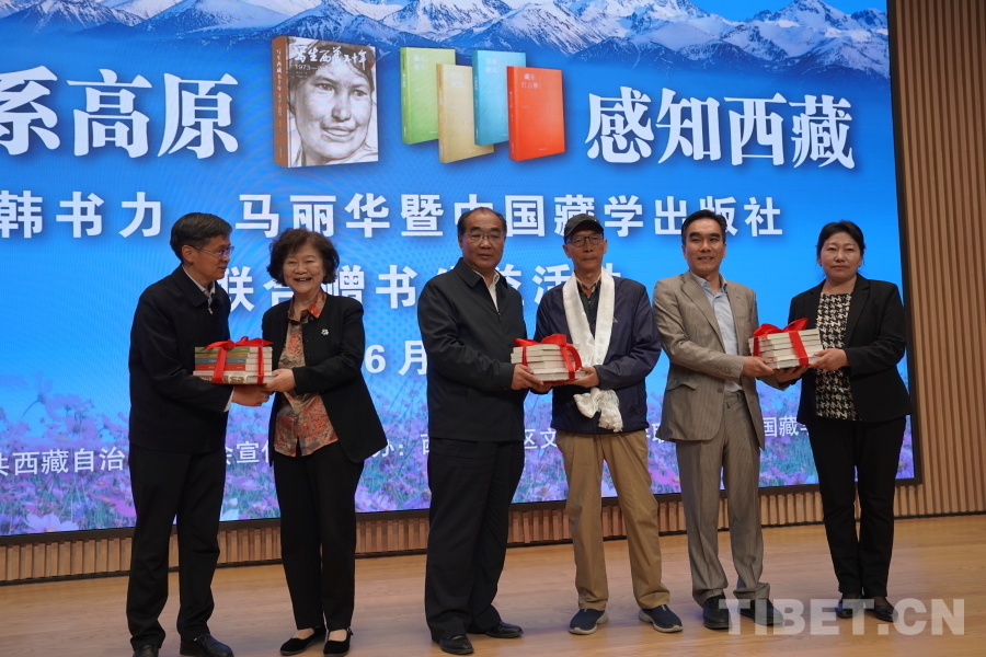 活動(dòng)現(xiàn)場,韓書力、馬麗華與中國藏學(xué)出版社向西藏多所學(xué)校、文化單位捐贈(zèng)美術(shù)、文學(xué)作品集以及中國藏學(xué)出版社系列圖書共計(jì)25000余冊,價(jià)值近200萬元。