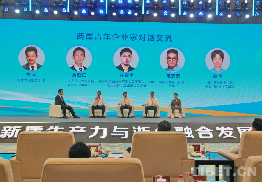 開幕式上,阿里巴巴集團董事會主席蔡崇信,新華三集團總裁兼CEO于英濤,富士康工業(yè)互聯(lián)網(wǎng)股份有限公司董事長、總經(jīng)理鄭弘孟,臺灣工業(yè)總會副理事長、敏實控股董事會主席秦榮華等兩岸企業(yè)家代表圍繞“新質(zhì)生產(chǎn)力與浙臺融合發(fā)展”進行了主旨演講。納獅新材料董事長袁安素、寧波齊芯半導體科技有限公司首席執(zhí)行官黃昭仁、新鳳鳴集團董事長莊耀中、杭州新劍機電傳動股份有限公司總經(jīng)理單晨等兩岸青年企業(yè)家圍繞“以科技創(chuàng)新、產(chǎn)業(yè)與人才合作助推加快形成新質(zhì)生產(chǎn)力”開展了對話交流。