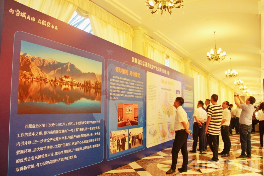 圖為西藏自治區(qū)通用航空產業(yè)招商引資推介會現場設置的展板吸引與會嘉賓駐足了解 攝影:劉莉