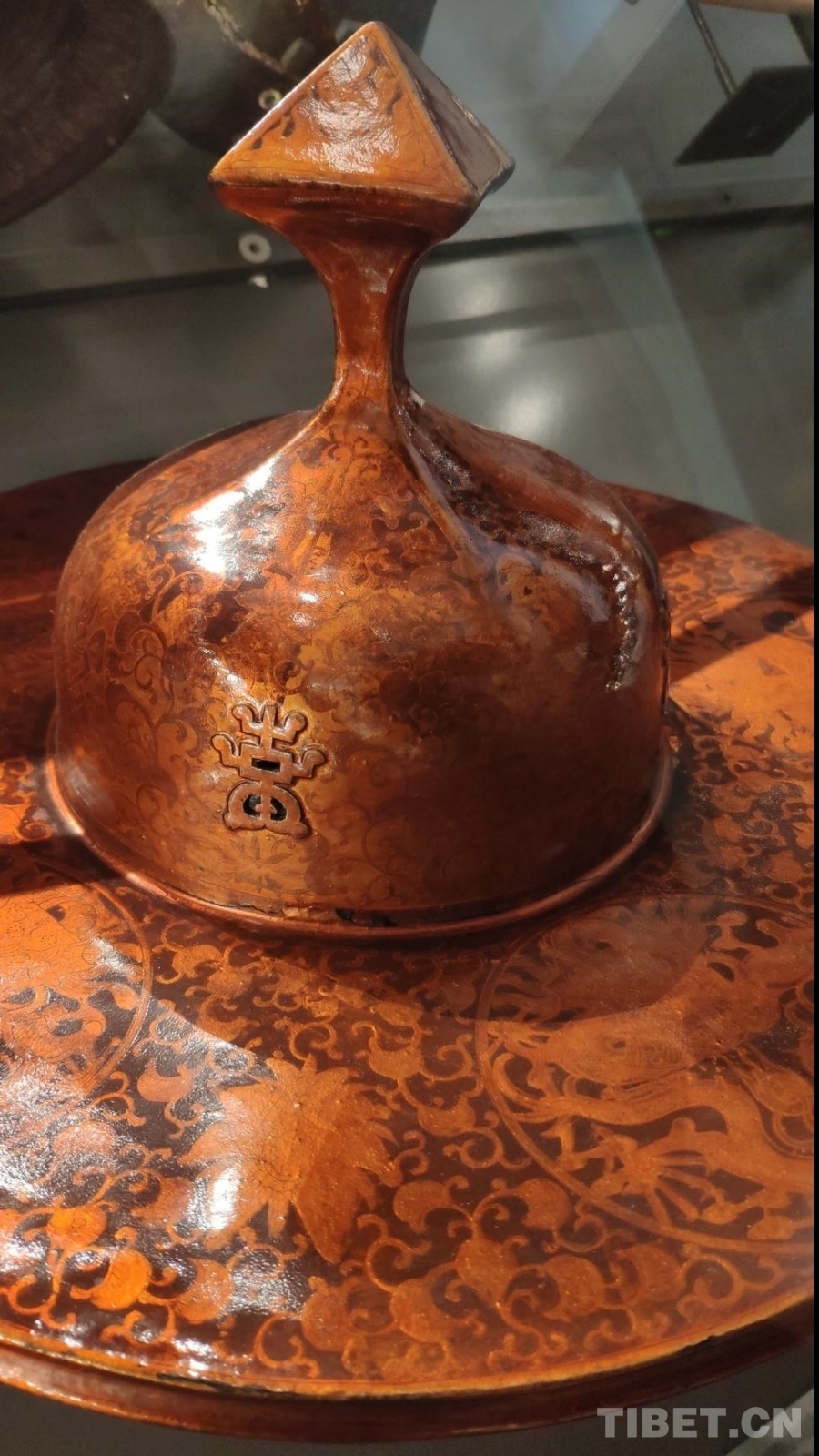 14號藏品漆繪帽上精美繁復(fù)的花紋圖案
