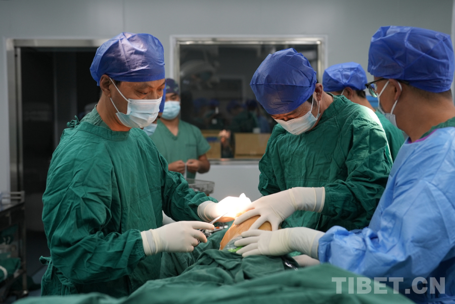 中國西藏網(wǎng)訊 2024年7月9日,在四川省甘孜藏族自治州巴塘縣人民醫(yī)院,“同心·共鑄中國心”醫(yī)務志愿者、北京積水潭醫(yī)院矯形骨科主任醫(yī)師李玉軍為一名患有膝關節(jié)病變的藏族患者實施了膝關節(jié)置換手術(shù)。