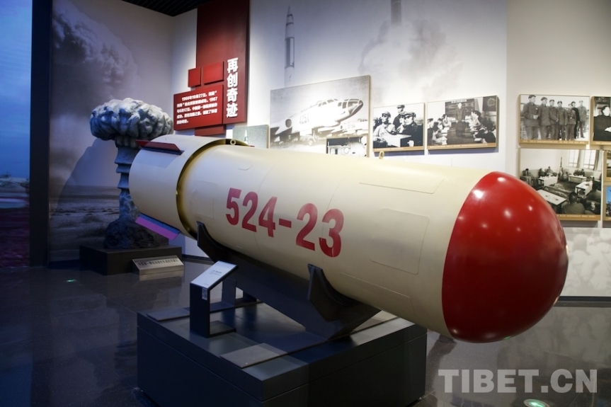 圖為中國(guó)第一顆機(jī)載氫彈模型。攝影:桑吉
