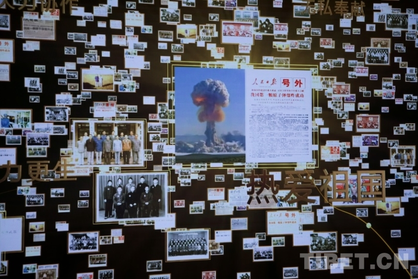 圖為中國(guó)第一顆原子彈爆炸成功宣傳影像畫(huà)面。攝影:桑吉