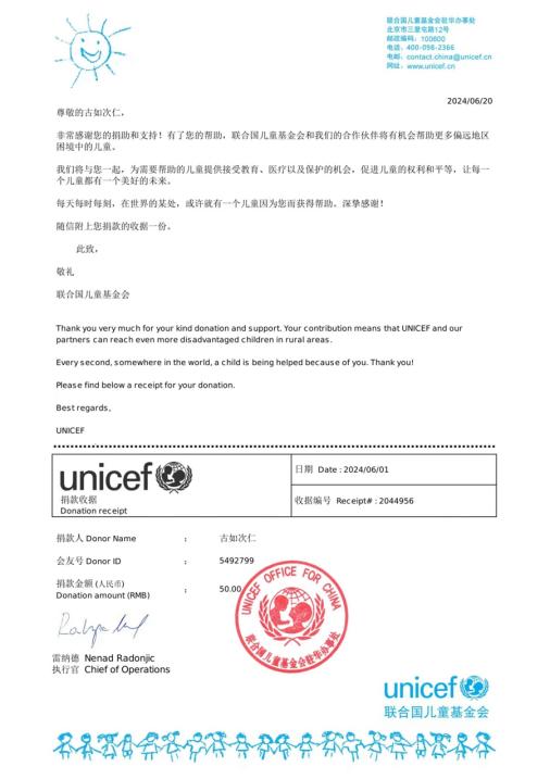 “之后的每個(gè)月我都會(huì)把省吃?xún)€用節(jié)約下來(lái)的錢(qián)捐贈(zèng)給聯(lián)合國(guó)兒童基金會(huì),雖然每月捐贈(zèng)的金額數(shù)不大,但我這幾年一直力所能及地堅(jiān)持做著這件事。”古如次仁說(shuō),到大學(xué)后每月還有勤工儉學(xué)的收入,所以我會(huì)繼續(xù)堅(jiān)持做這件事,能通過(guò)自己的方式幫助到貧困兒童非常有意義。