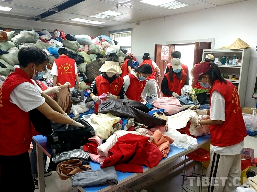 圖為古如次仁參加衣物分揀志愿服務(wù)活動(dòng)