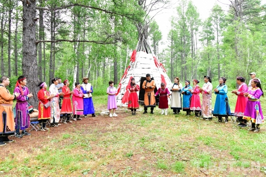 圖為鄂倫春族人民盛裝歡迎遠(yuǎn)方的來(lái)賓