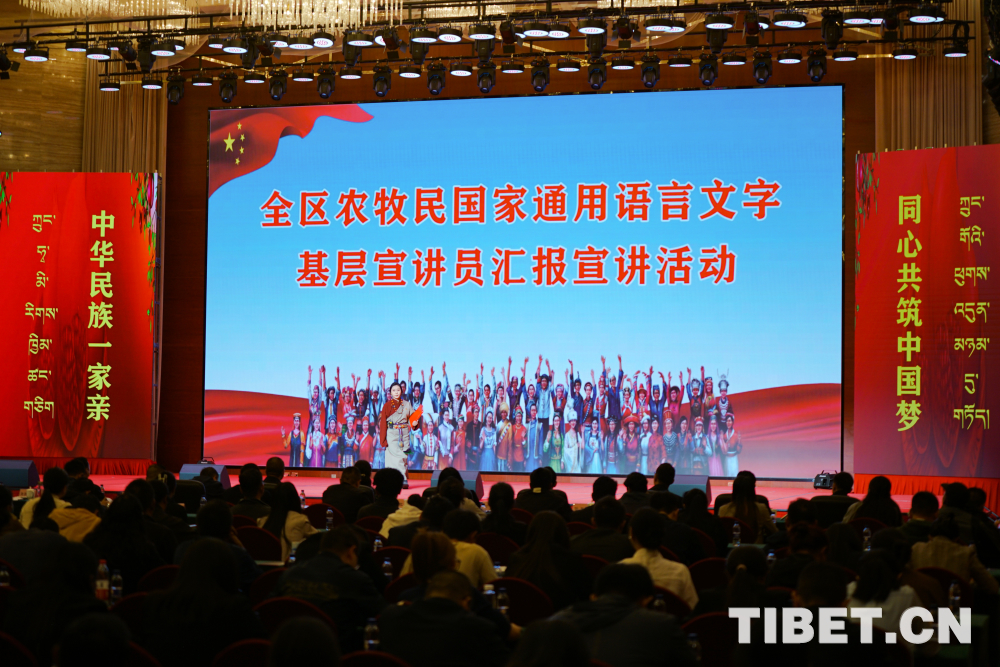 中國西藏網(wǎng)訊 “語言不僅僅是一種交流工具,它還承載著情感、態(tài)度和價值觀。即使在那曲,每個地區(qū)的方言都有很大的差別,正是因為國家通用語言文字的使用,讓大家方便了溝通,增進(jìn)了相互了解?!?月28日,西藏全區(qū)農(nóng)牧民國家通用語言文字基層宣講員匯報宣講活動在拉薩市開展,來自那曲市巴青縣瑪如鄉(xiāng)曲古村的農(nóng)牧民宣講員達(dá)拉才措正在舞臺上向大家分享著她在基層宣講的經(jīng)歷。