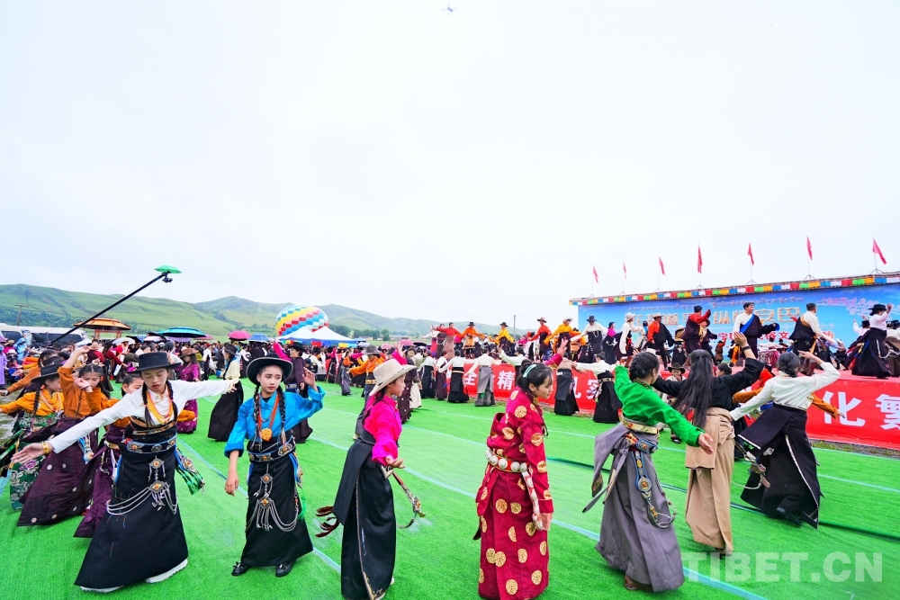 一場傳統(tǒng)的祈福儀式拉開活動的序幕。身著盛裝的騎手擎著彩旗,策馬轉(zhuǎn)繞祈福的煨桑臺,共同祝愿祖國繁榮昌盛,祝福家鄉(xiāng)安定祥和,各族人民團結(jié)進步。少兒服飾隊和300名當?shù)厝罕娛峙豕_悉數(shù)亮相在舞臺前,向四方來客表示誠摯歡迎?!百愸R”“吉祥大鍋莊”等民族歌舞精彩上演,游客也加入其中跳起團結(jié)鍋莊,盡享盛夏安巴之樂。