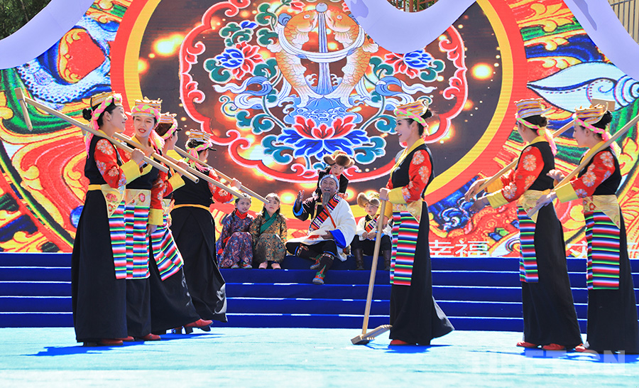 開幕式文藝演出分為“春之韻”“夏之夢”“秋之歌”“冬之舞”四個篇章,通過舞蹈、情景劇、歌曲等多種形式,生動展現(xiàn)了洛扎人民在穩(wěn)定、發(fā)展、生態(tài)、強邊等方面的付出與成就。