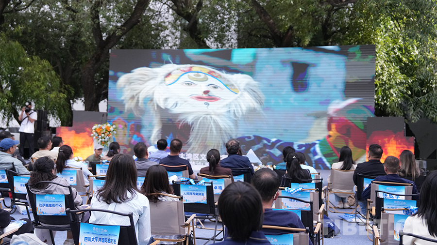 圖為現(xiàn)場嘉賓觀看山南的宣傳片 攝影:德吉卓瑪