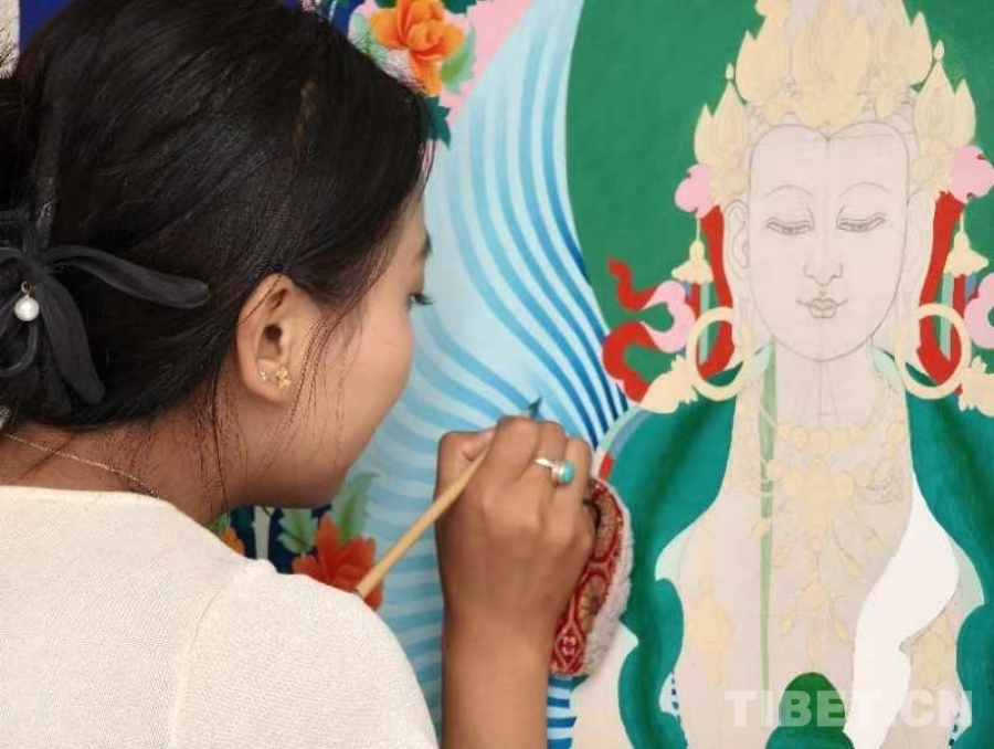圖為青海研學營的學生體驗給唐卡上色 攝影:陳浩力