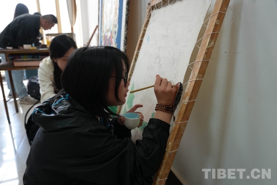 在熱貢畫院,師生們親眼目睹了畫師們的創(chuàng)作過程。畫師們全神貫注地繪制著唐卡,一筆一畫間盡顯對藝術的執(zhí)著與熱愛。他們精湛的技藝和嚴謹?shù)膽B(tài)度讓大家深受觸動,更深刻地體會到了熱貢藝術的博大精深。