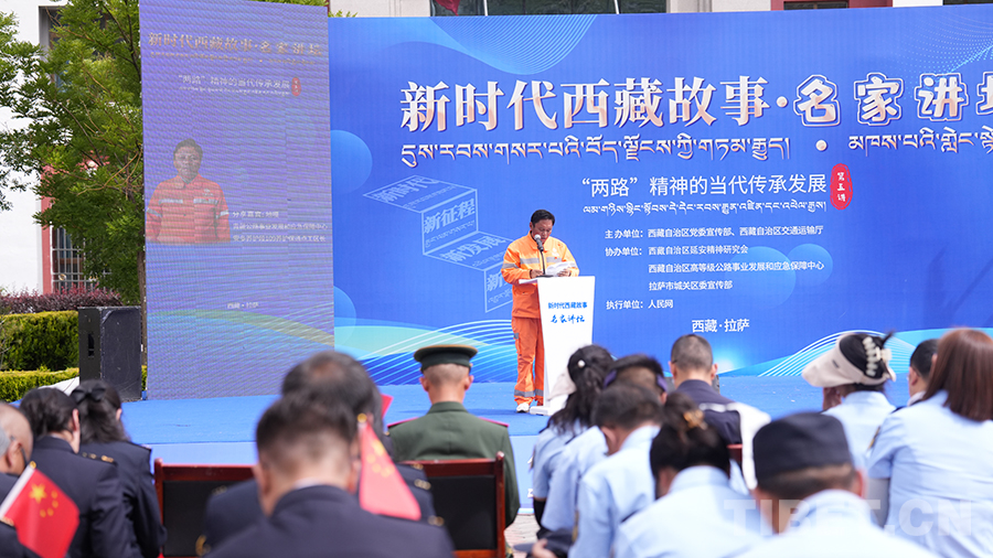 活動(dòng)采取踐行典范與專家宣講相結(jié)合的形式,邀請(qǐng)到了西藏自治區(qū)黨委黨校(行政學(xué)院)常務(wù)副校長(副院長)、教授崔祿春擔(dān)任主講嘉賓,同時(shí)也邀請(qǐng)青藏公路事業(yè)發(fā)展和應(yīng)急保障中心安多養(yǎng)護(hù)段109養(yǎng)護(hù)保通點(diǎn)工區(qū)長地嘎、武警第二機(jī)動(dòng)總隊(duì)某部戰(zhàn)士白剛分享自己與路有關(guān)的故事。