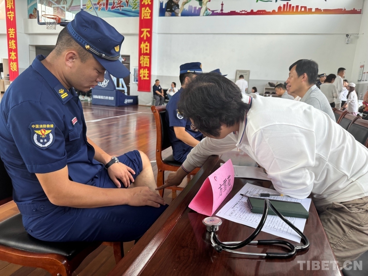 儀式結(jié)束后,志愿者們兵分兩路,一路為消防指戰(zhàn)員、武警官兵及退伍軍人開展義診,為他們送去溫暖與關(guān)懷;另一路參與到了消防科目演練中,進行了防水、防火、防震等應(yīng)急救援相關(guān)技能培訓(xùn)。