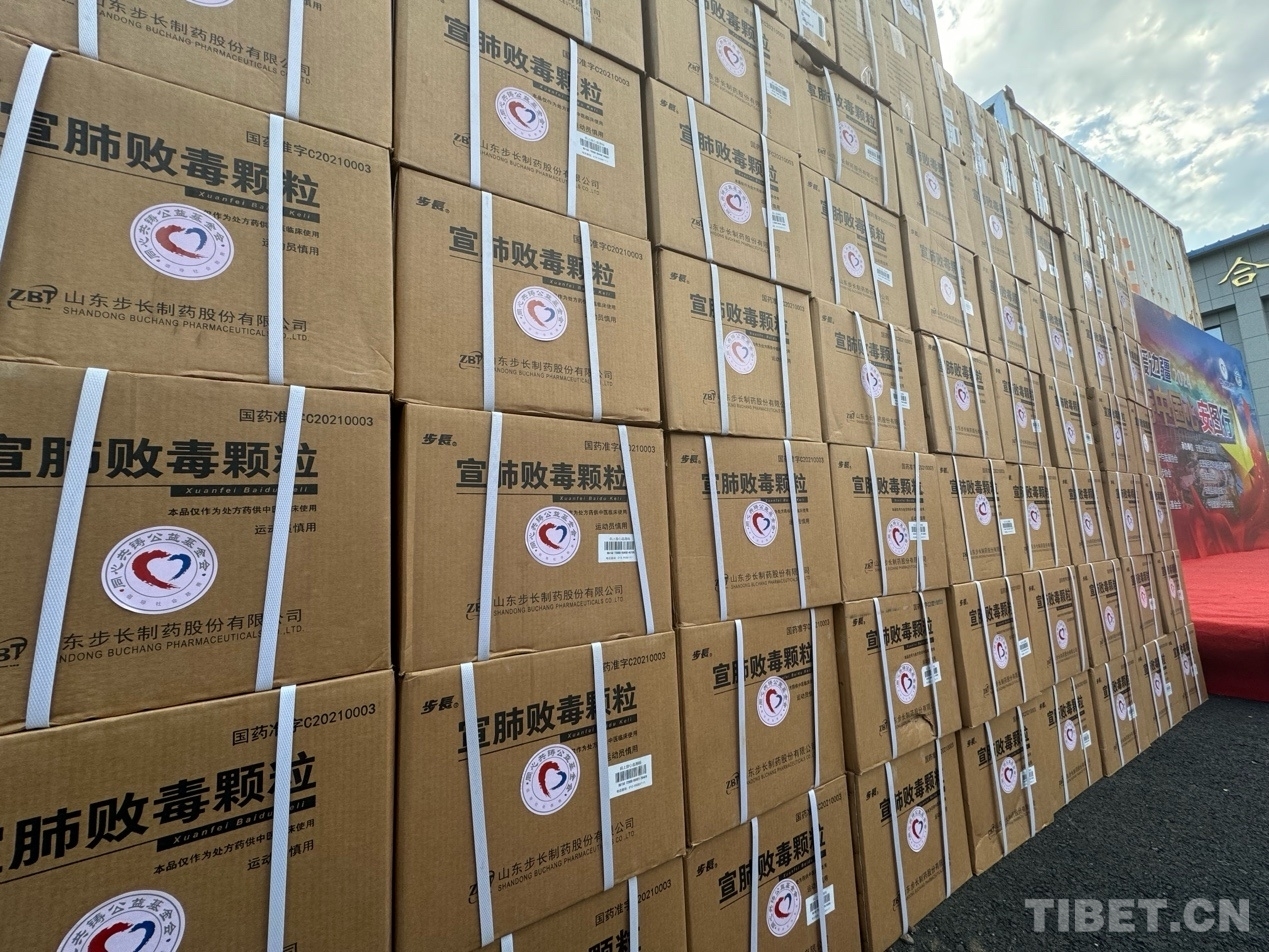 圖為2024“同心共鑄 情暖邊疆”——走進安圖大型公益活動啟動儀式現(xiàn)場的捐贈藥品