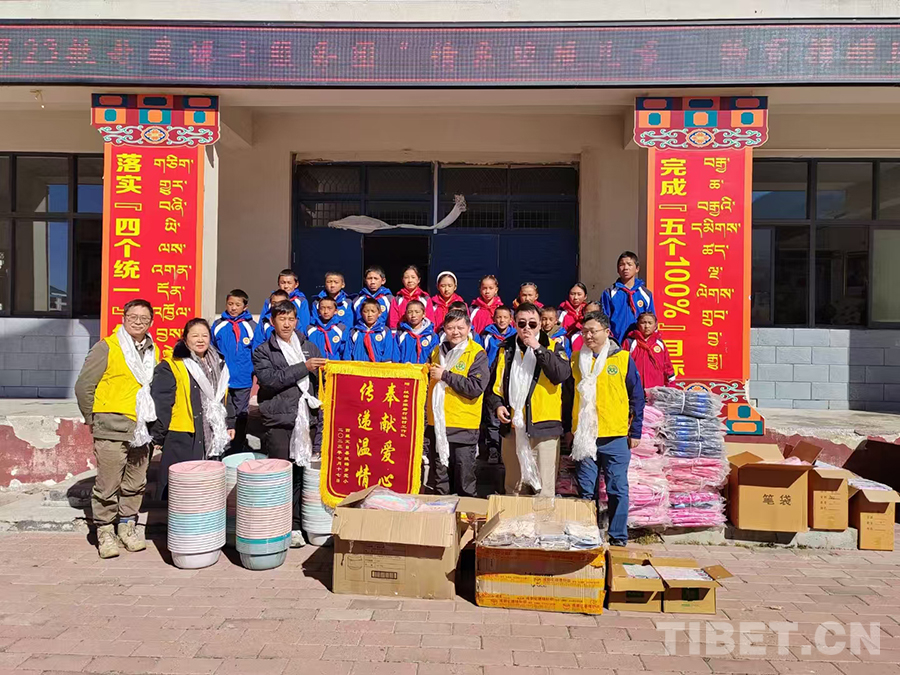 2023年11月,作為北京市新聯(lián)會理事、石景山區(qū)新聯(lián)會會長、朵云文化藝術(shù)服務(wù)中心主任,我第二次到西藏,隨公益組織雙閃車隊、援藏博士服務(wù)團一起到日喀則市定日縣絨轄鄉(xiāng)完小,為這所邊境小學捐贈了價值1000元的文具。