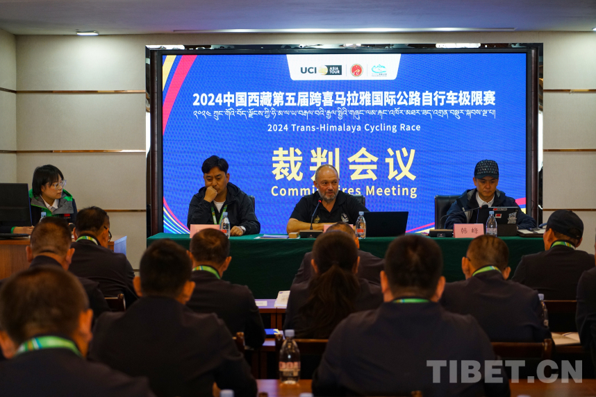 圖為托尼·安東尼在2024中國西藏第五屆跨喜馬拉雅國際公路自行車極限賽裁判會議上講話 攝影:趙振宇