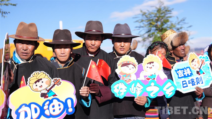 圖為在日喀則賽段起點(diǎn)為運(yùn)動員加油的觀眾 攝影:德吉卓瑪