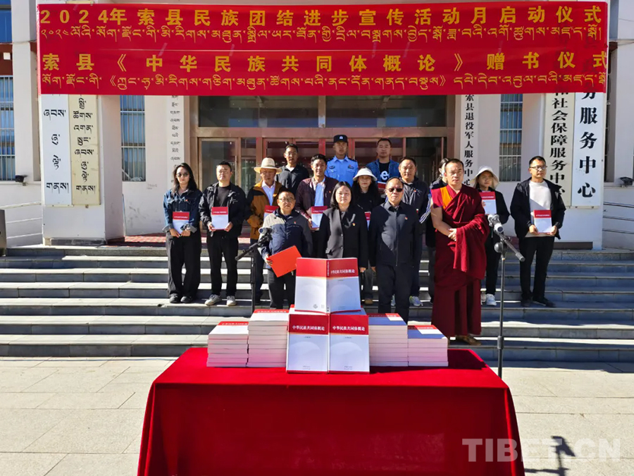 8月30日,西藏自治區(qū)那曲市索縣民族團結(jié)進步宣傳活動月啟動儀式舉行,同時開展了《中華民族共同體概論》贈書活動,全縣各族各界干部群眾代表共計100余人參加。此次啟動儀式的舉辦,標志著索縣民族團結(jié)進步宣傳活動月正式拉開帷幕。