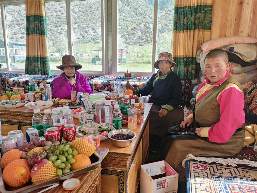 圖為洛隆縣開展“長者夏季林卡活動”,組織特困人員一同過林卡