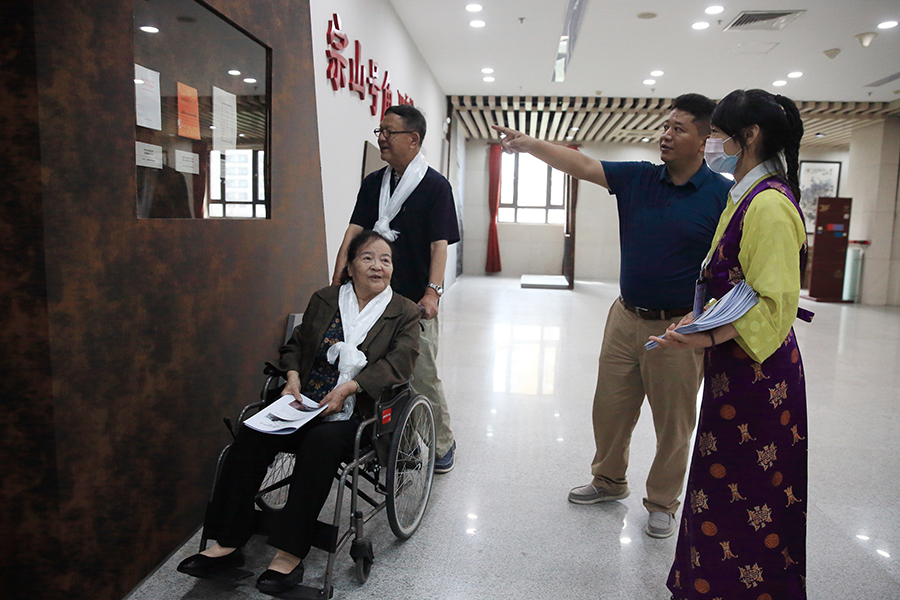在展覽現(xiàn)場,李國柱認(rèn)真聽取講解員的介紹,時不時和大家分享她當(dāng)年在江孜工作生活的情況。李國柱與丈夫陰法唐將軍的四個女兒中,兩個女兒在江孜出生,而且有三個人的名字都是用漢語藏語音意結(jié)合起的。二女兒起名“建白”,“白”是藏語西藏的音譯,取意“建設(shè)西藏”。三女兒起名“江沙”,“沙”在藏語里是新的意思,取意“建設(shè)新江孜”。小女兒起名“亞農(nóng)”,“亞”在藏語里是發(fā)展的意思,取意“發(fā)展西藏農(nóng)業(yè)”。